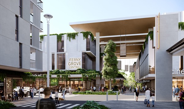 Led by the state government Department of Transport and Main Roads (TMR), Ferny Grove is a mixed-use TOD outcome at the Ferny Grove train station and transport interchange. The station is envisaged to cater for more than 5,000 passengers per day from the end-of-the-line transport hub, and the development is to include 1,400 carparks. The hub also connects with the scenic cycleway to Samford Village.